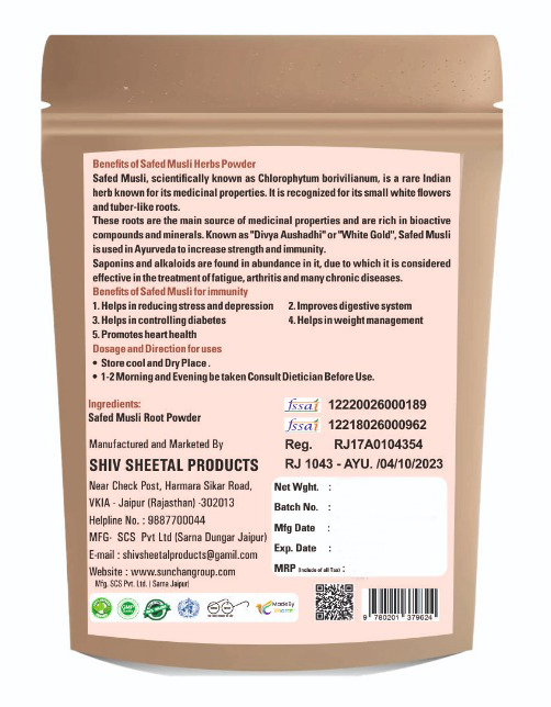 Safed Musli, scientifically known as Chlorophytum borivilianum, is a rare Indian herb known for its medicinal properties. It is recognized for its small white flowers and tuber-like roots.These roots are the main source of medicinal properties and are rich in bioactive compounds and minerals. Known as “Divya Aushadhi” or “White Gold”, Safed Musli is used in Ayurveda to increase strength and immunity.Saponins and alkaloids are found in abundance in it, due to which it is considered effective in the treatment of fatigue, arthritis and many chronic diseases.