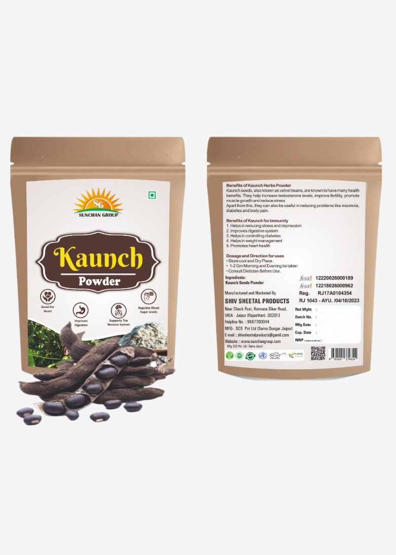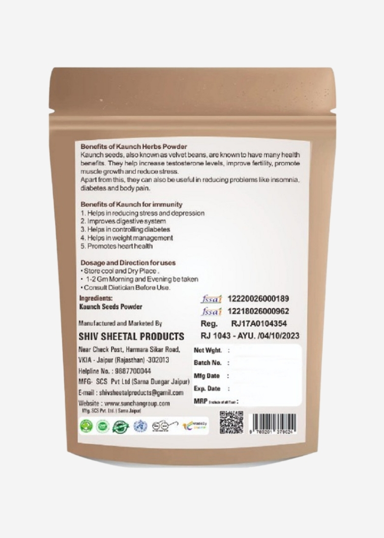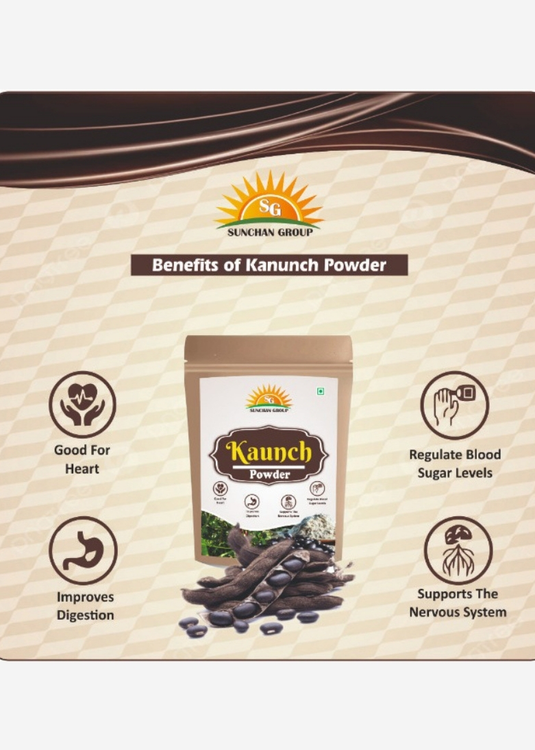 Benefits of Kaunch Herbs Powder Kaunch seeds, also known as velvet beans, are known to have many health benefits. They help increase testosterone levels, improve fertility, promote muscle growth and reduce stress.Apart from this, they can also be useful in reducing problems like insomnia, diabetes and body pain.