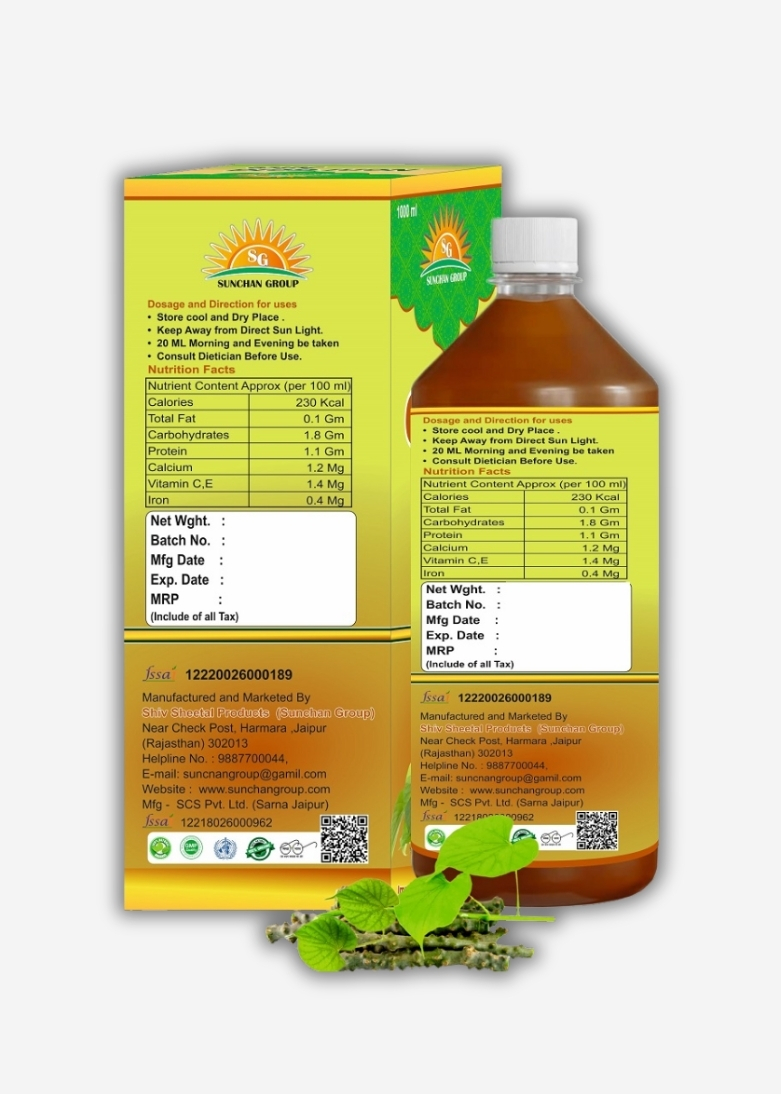 Sunchan Group Giloy Juice 1 Ltr Neem Giloy Amrit bela Guduchi juice 1000 ML with Box Fruit Juice Pack of 1×1000 ML